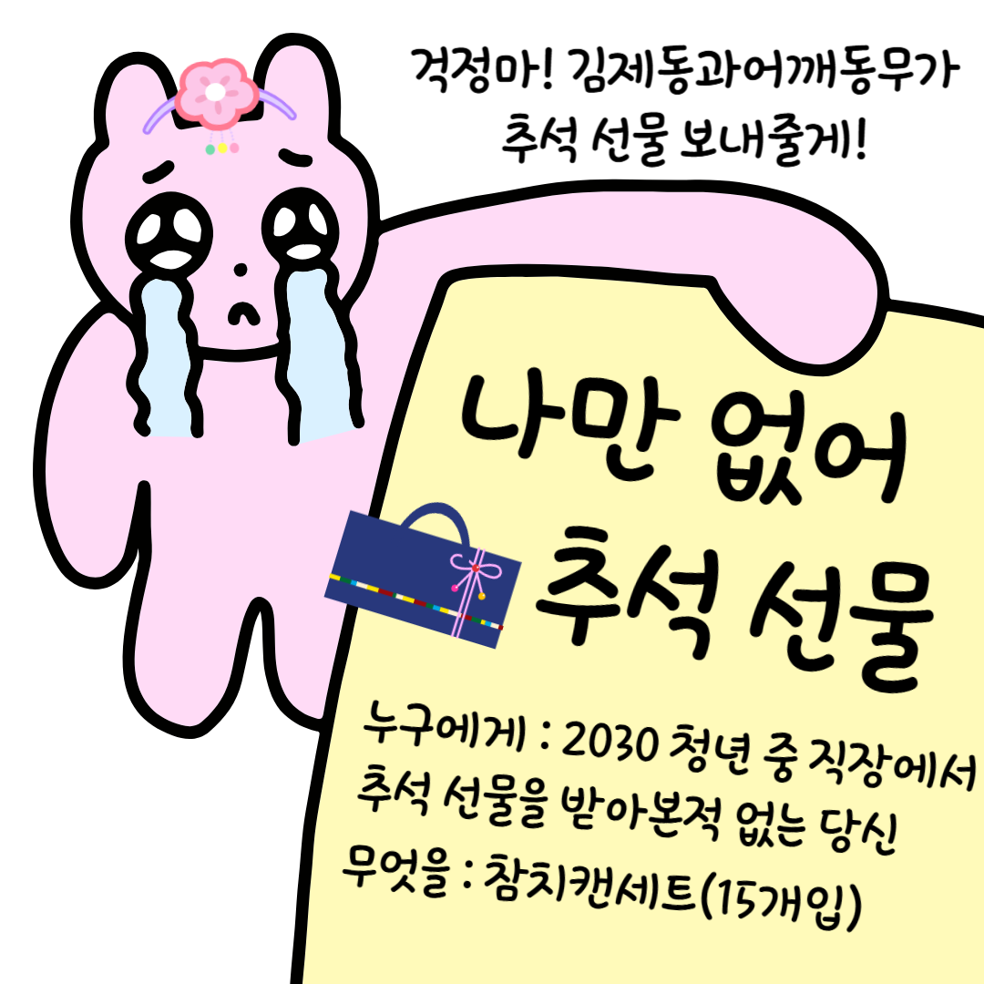 2030 청년들 중 직장에서 명절 선물을 받아본 적 없는 분, 추석 선물은 남의 이야기인 분들은 신청해주세요😫