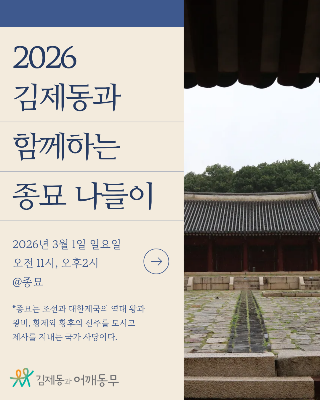 강담사 김제동님과 함께 종묘를 둘러보는 역사나들이 함께해요.😎