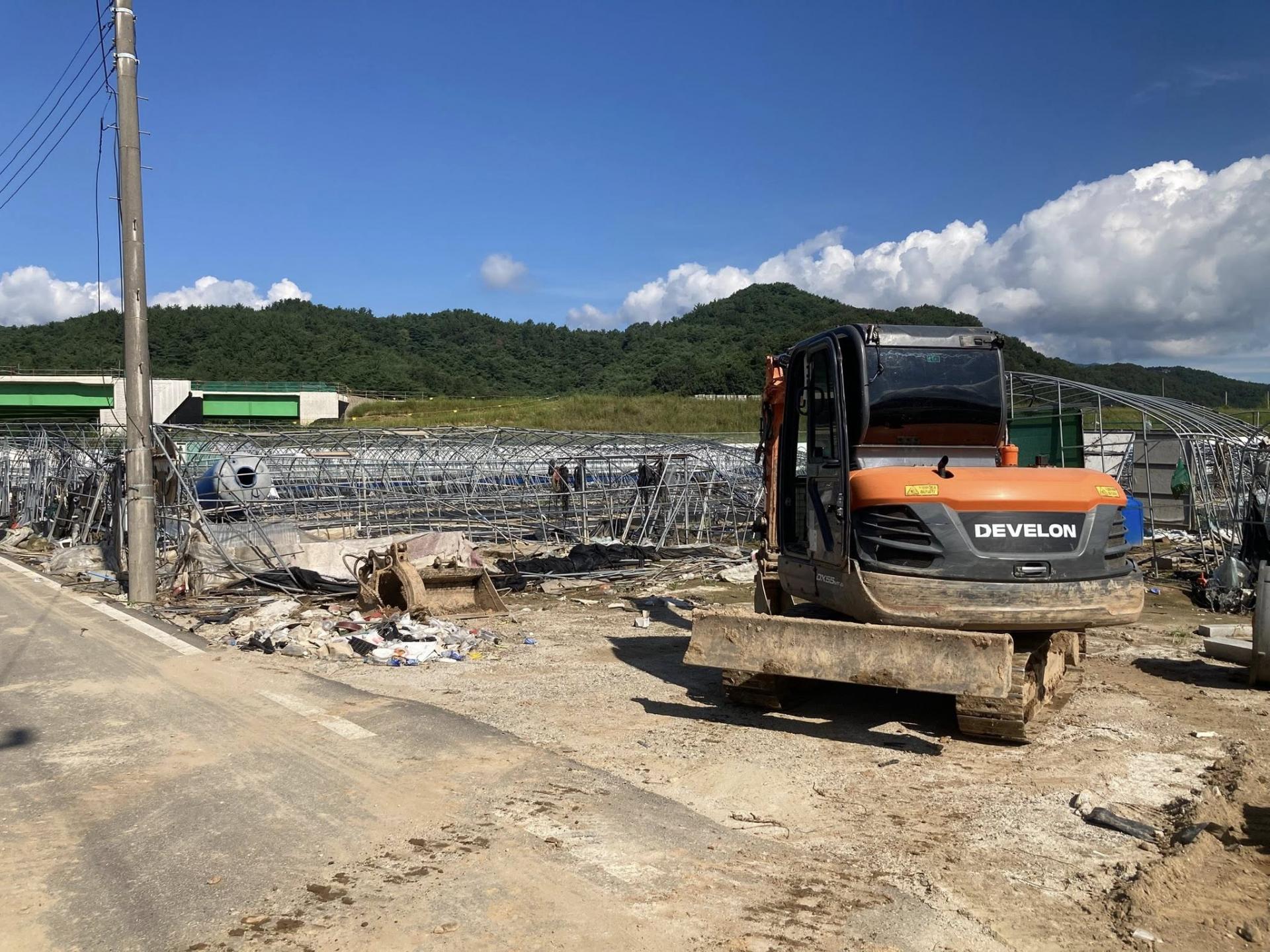 이번 7월 폭우로 산청과 인근 진주, 합천 지역에서 침수된 하우스들이 무척 많은데요, 대개 주택피해와 달리 하우스들은 수해를 입은지 오래돼도 피해복구가 더딥니다. 농가 스스로 해결하기엔 면적이 워낙 큰데다 트랙터 같은 장비도 침수되고 폭염으로 작업도 더디기 때문입니다.
