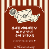 - 공지 모집중 김제동과어깨동무 10주년 「추억 조각모음」 사연 공모 N 💛 김제동과어깨동무 10주년 「추억 조각모음」 사연 공모올해 김제동과어깨동무가 10주년을 맞았습니다.지난 10년, 함께한 여러분의 추억을 들려주세요.글·사진&middo...