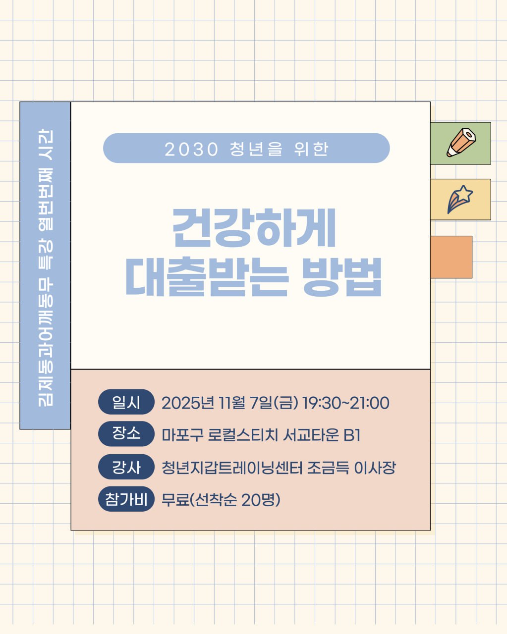 청년지갑트레이닝센터 조금득 이사장님을 모시고 무료 특강 강의를 준비했습니다.