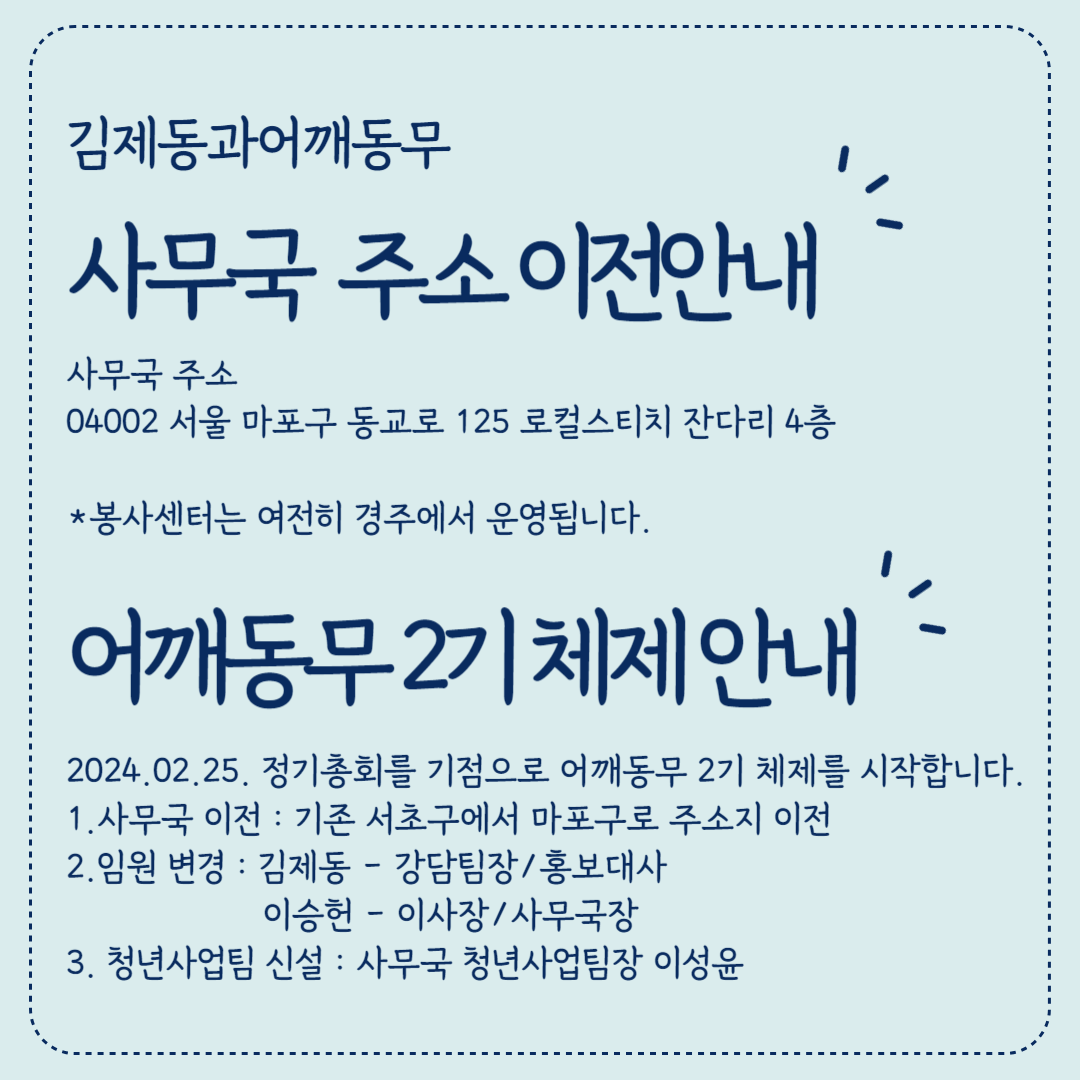 2024.02.25. 어깨동무 8차 정기총회를 기점으로 어깨동무 2기 체제를 시작합니다.