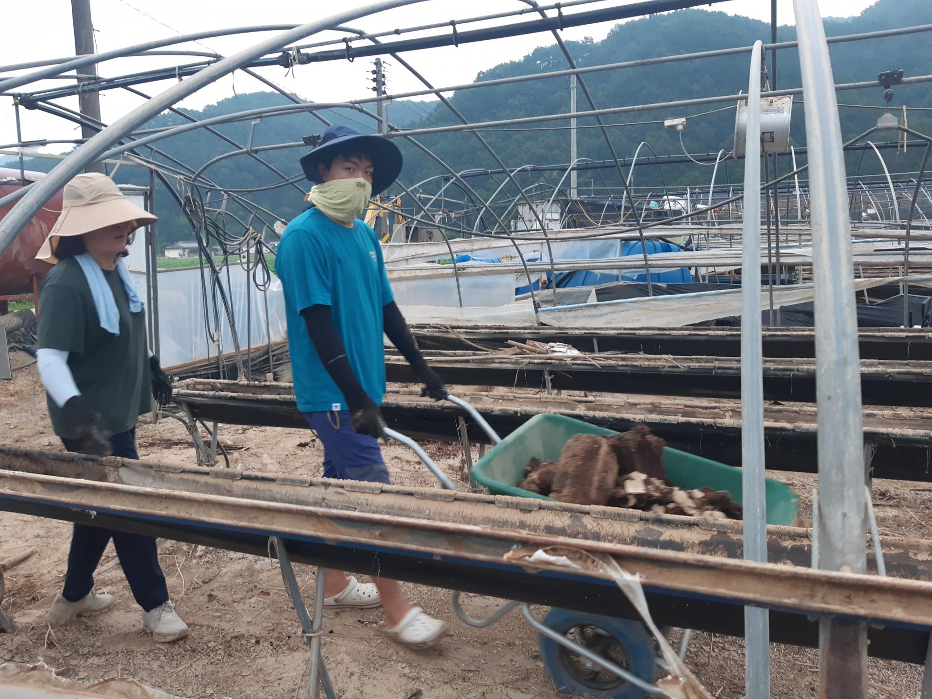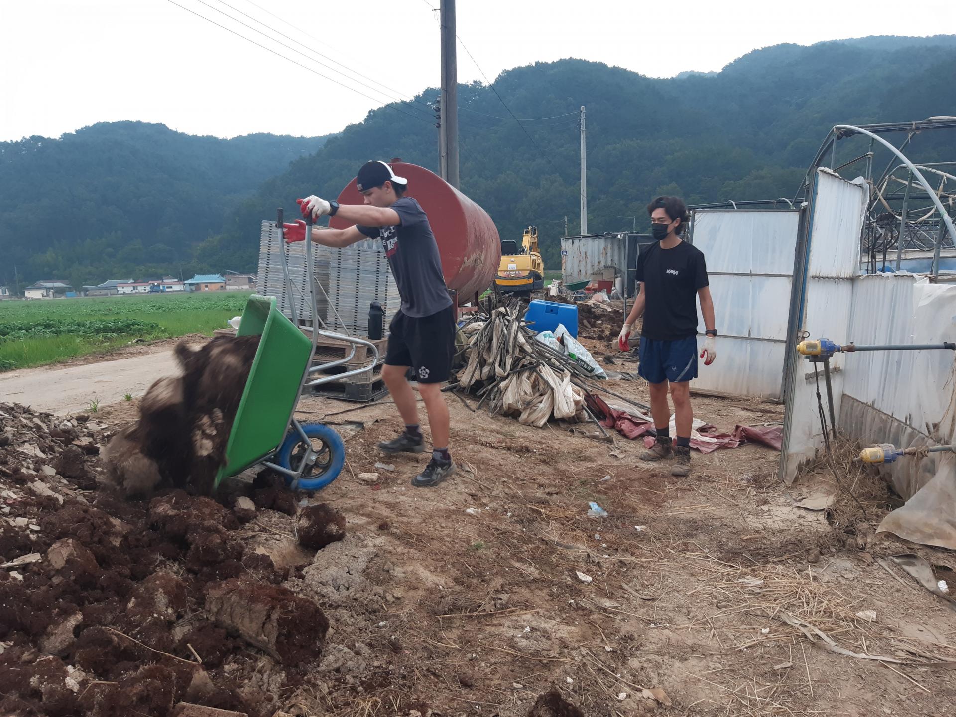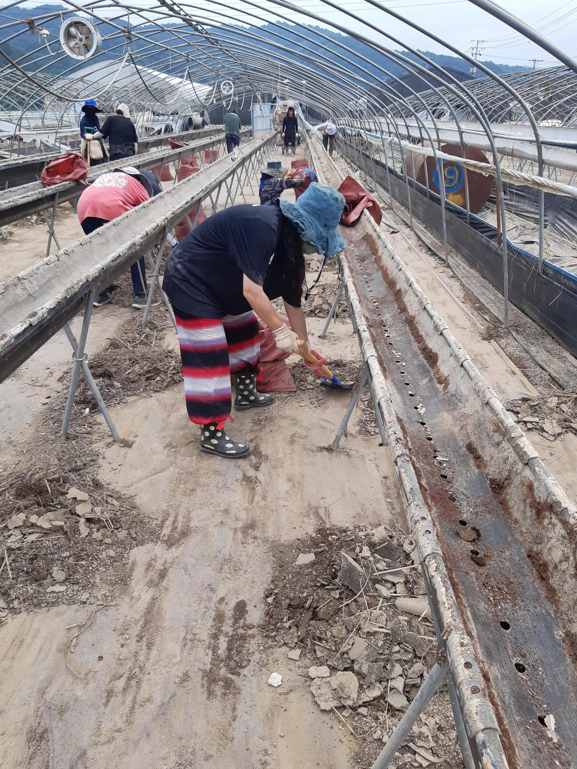 둘째날 오전에는 딸기하우스에서 토사를 빼내는 작업을 했습니다.