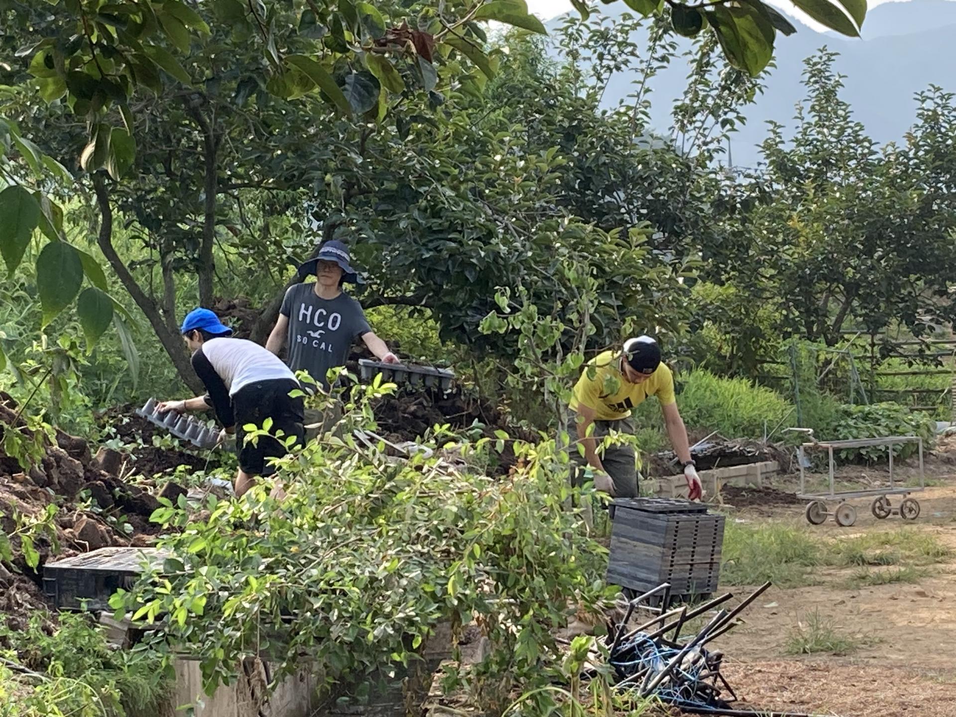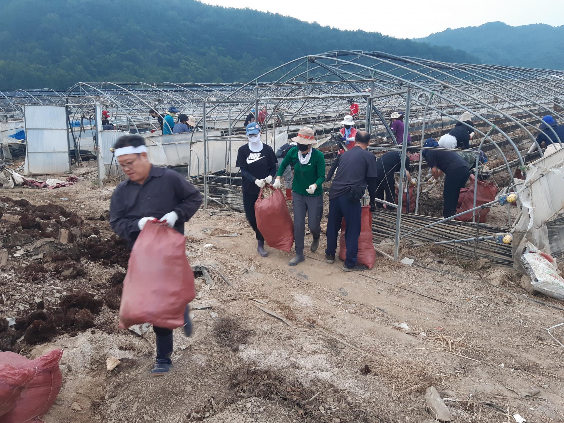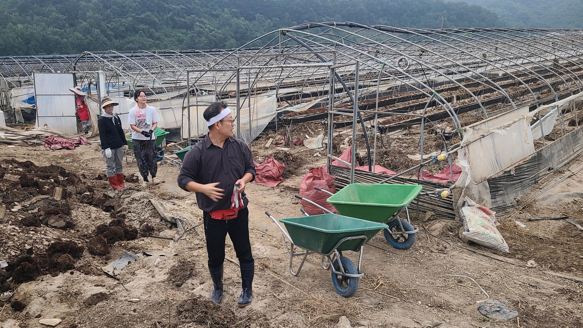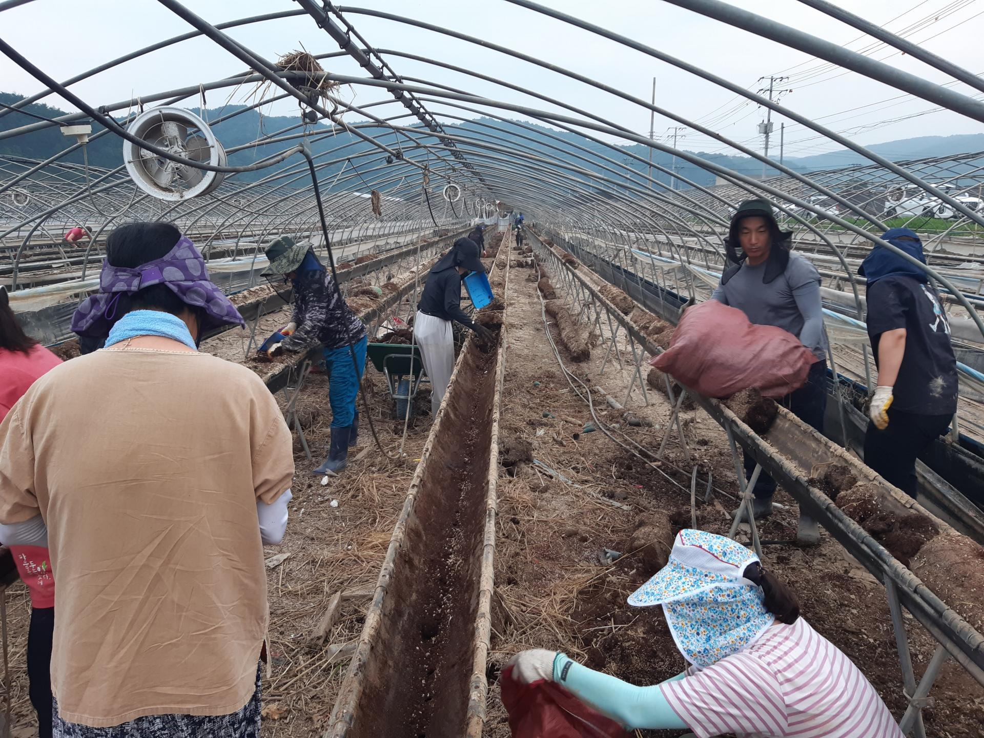 둘째날 오전에는 딸기하우스에서 토사를 빼내는 작업을 했습니다.