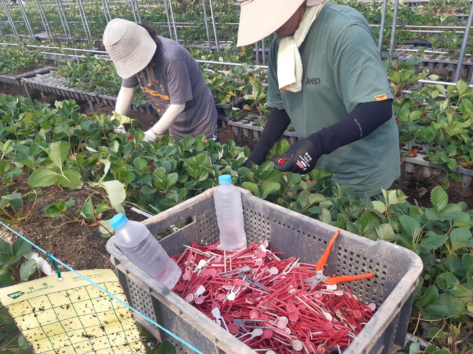 첫째날 오후는 이식을 거의 눈앞에 두고 수해를 입은 딸기하우스 모종 정리작업을 했고요,