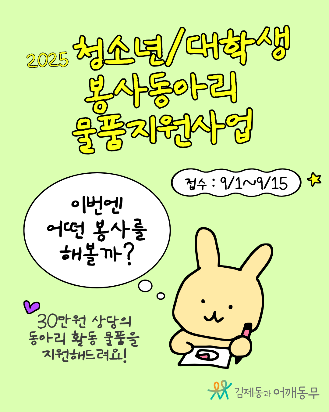 1. 사 업 명: 2025년 하반기 김제동과어깨동무 봉사동아리 물품지원사업