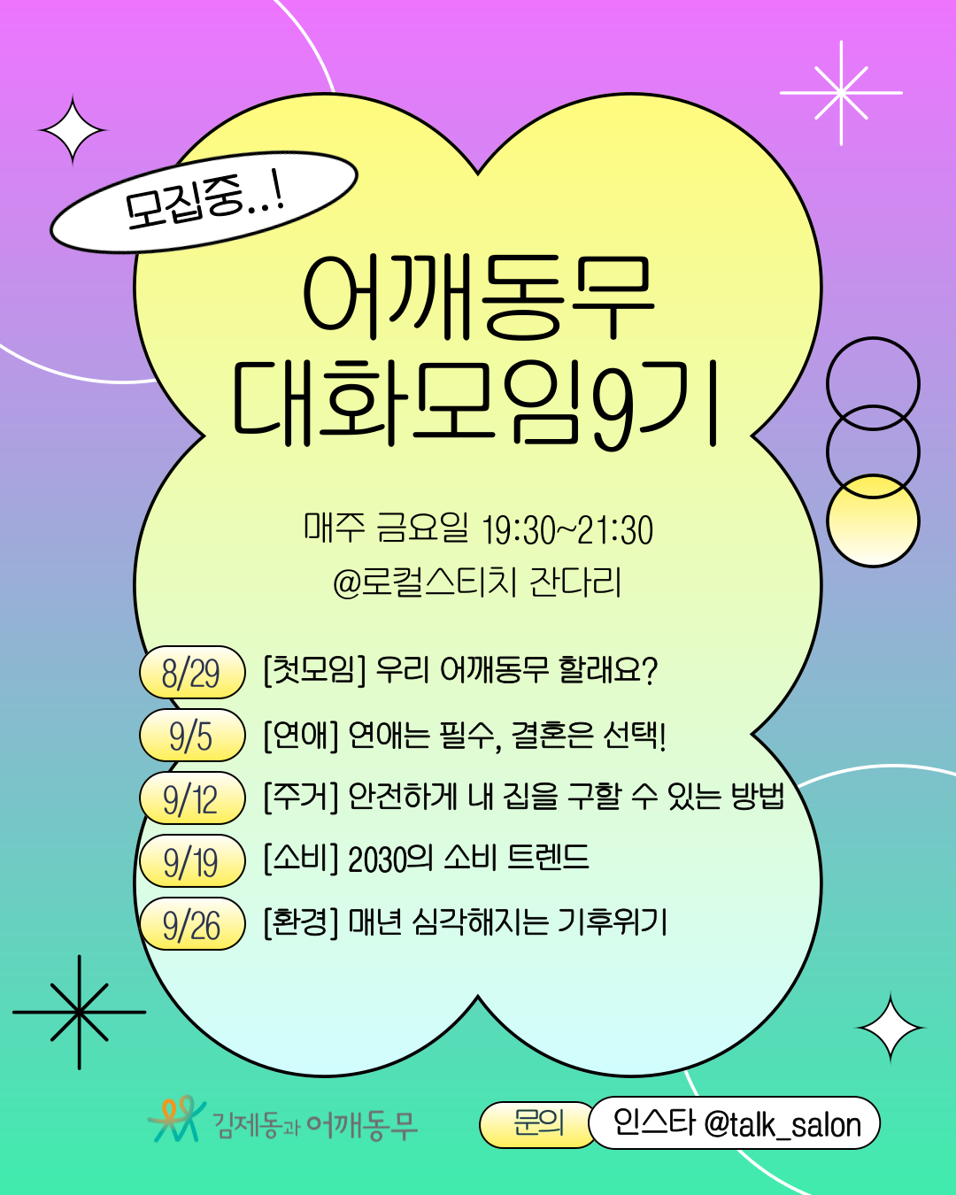 (사)김제동과어깨동무에서 2030 대화모임을 개최합니다.🎊